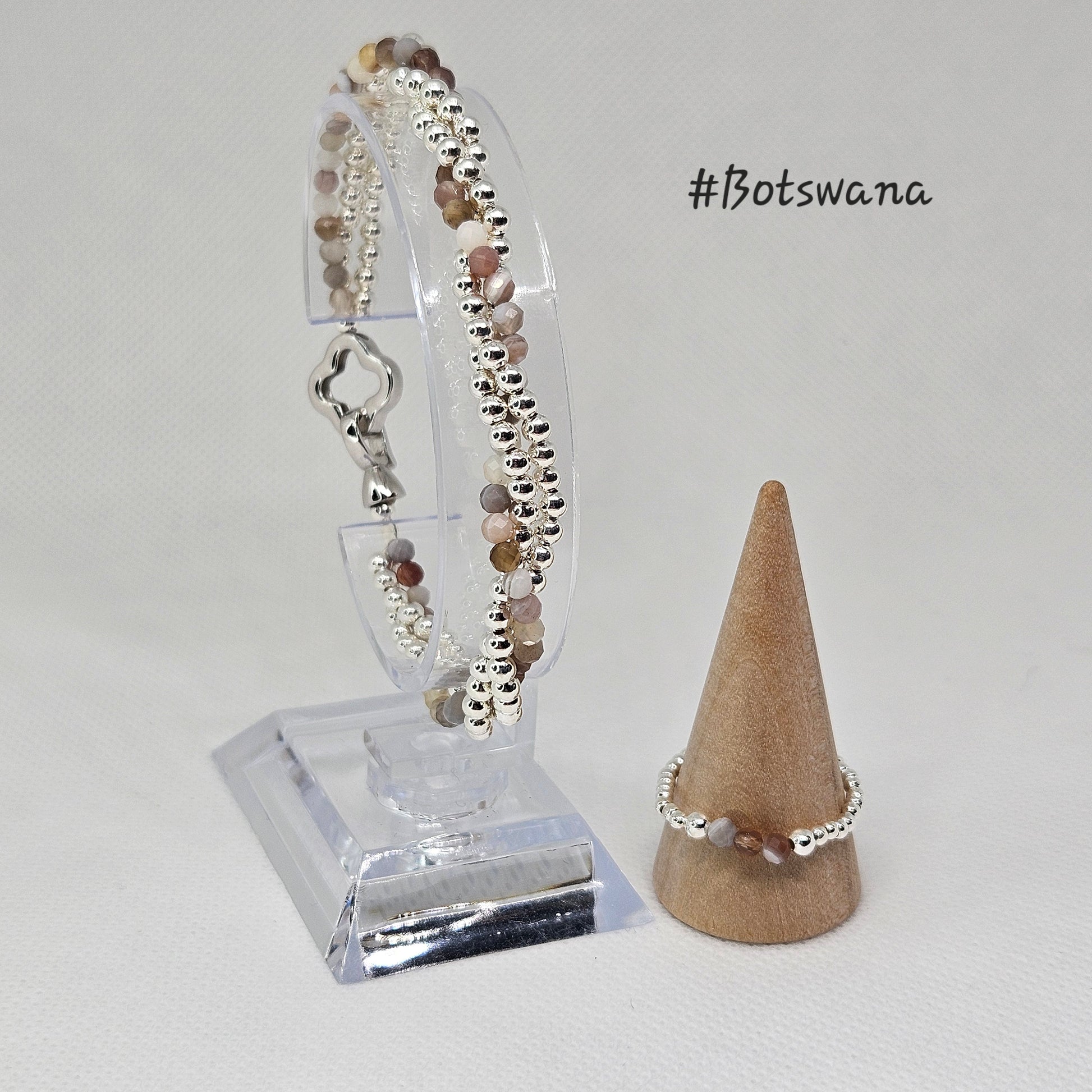 S925 Stretchy silver bead and crystal bracelets